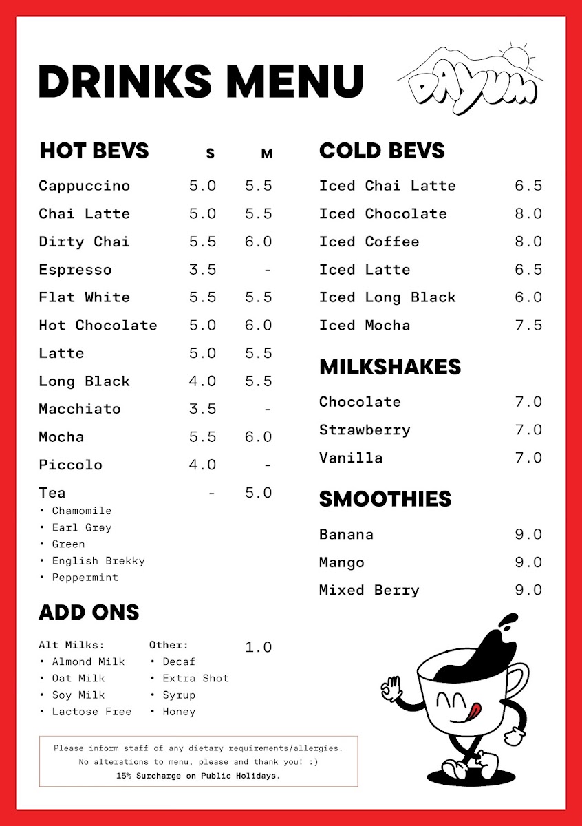 DAYUM CAFE Menu